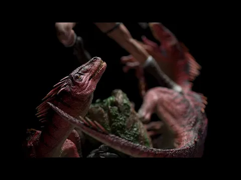 The figure represents the iconic Lost Valley level from the original Tomb Raider with two raptors and Lara Croft herself. Other features include a 1 to 4 scale, 40.6 cm wide, 80 cm high and 44.4 cm deep, and a weight of 12.61 kg.